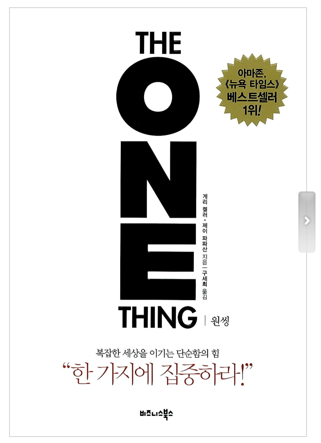우리는 한정된 시간을 살아간다. 주어진 24시간을 효율적으로 활용하기 위해서는 해야할 일에 우선순위를 두어야 한다. 원씽은 우선순위를 3가지도 아닌 무려 1가지에만 집중하라고 말한다. (1) 내가 할 수 있는 단 하나의 일은 무엇일까? (2) 그 일을 함으로써 (3) 다른 모든 일들을 쉽게 혹은 필요없게 만들 일은 무엇인가? 예를 들어 이번주 목표 달성을 위해 나의 다른 모든일을 더 쉽게 혹은 필요 없게 만들어 줄 단 하나의 일은 무엇인가? 단 하나에만 집중하더라도 성과를 극대화 할 수 있다. 이는 질문하는 분야를 확장해서 적용해 볼 수 있다. (1) 질문하고자 하는 분야를 선정한다. (2) 질문과 시기를 선정한다. (3) 그것을 함으로서 다른 모든 일을 쉽게 혹은 필요없게 만들 수 있는 일이 무엇인지를 질문할 수 있다.